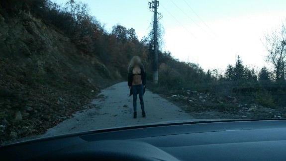 Euro Milf Milana Stripping Outside